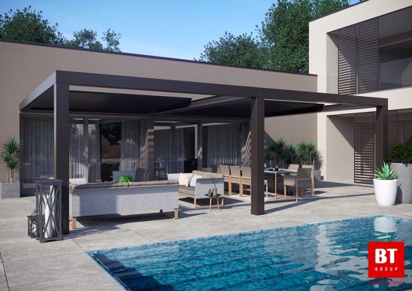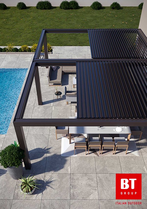 La Pergola Bioclimatica Pergomove di BT Group rappresenta una soluzione all’avanguardia per vivere gli spazi esterni in ogni stagione. Costruita interamente in alluminio, è disponibile sia in versione autoportante che addossata a parete, offrendo un design innovativo e ricercato.